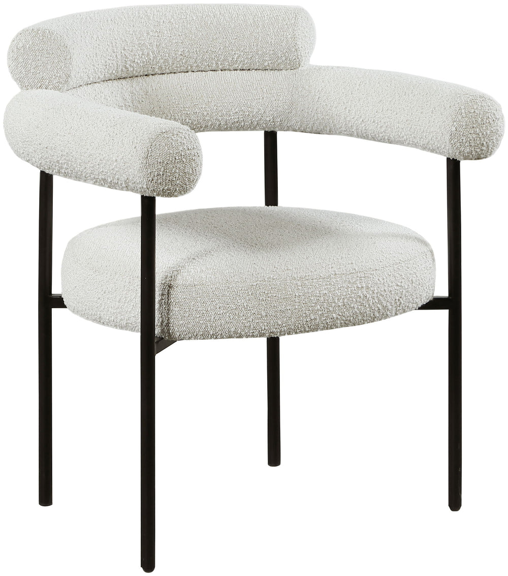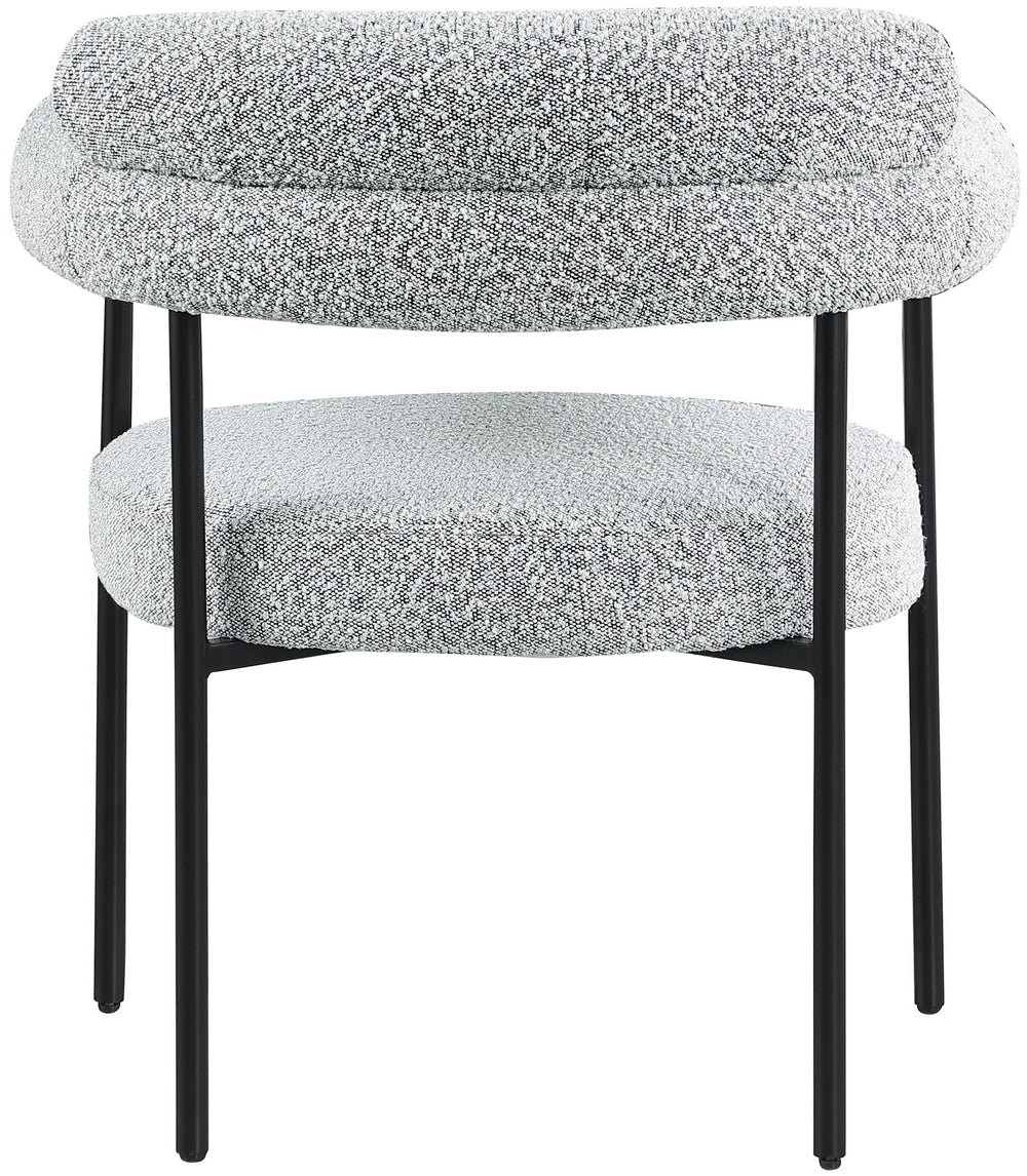 Modernize your dining space with these Blake boucle fabric dining chairs. This pair of contemporary dining chairs features rich boucle fabric, making them comfortable to sit on. Their matte metal frames provide sturdy support so you can relax knowing they ll seat you for years to come. Built to last, these chairs are strong enough for most users. Pair these pretty chairs with your choice of dining table for a custom look.