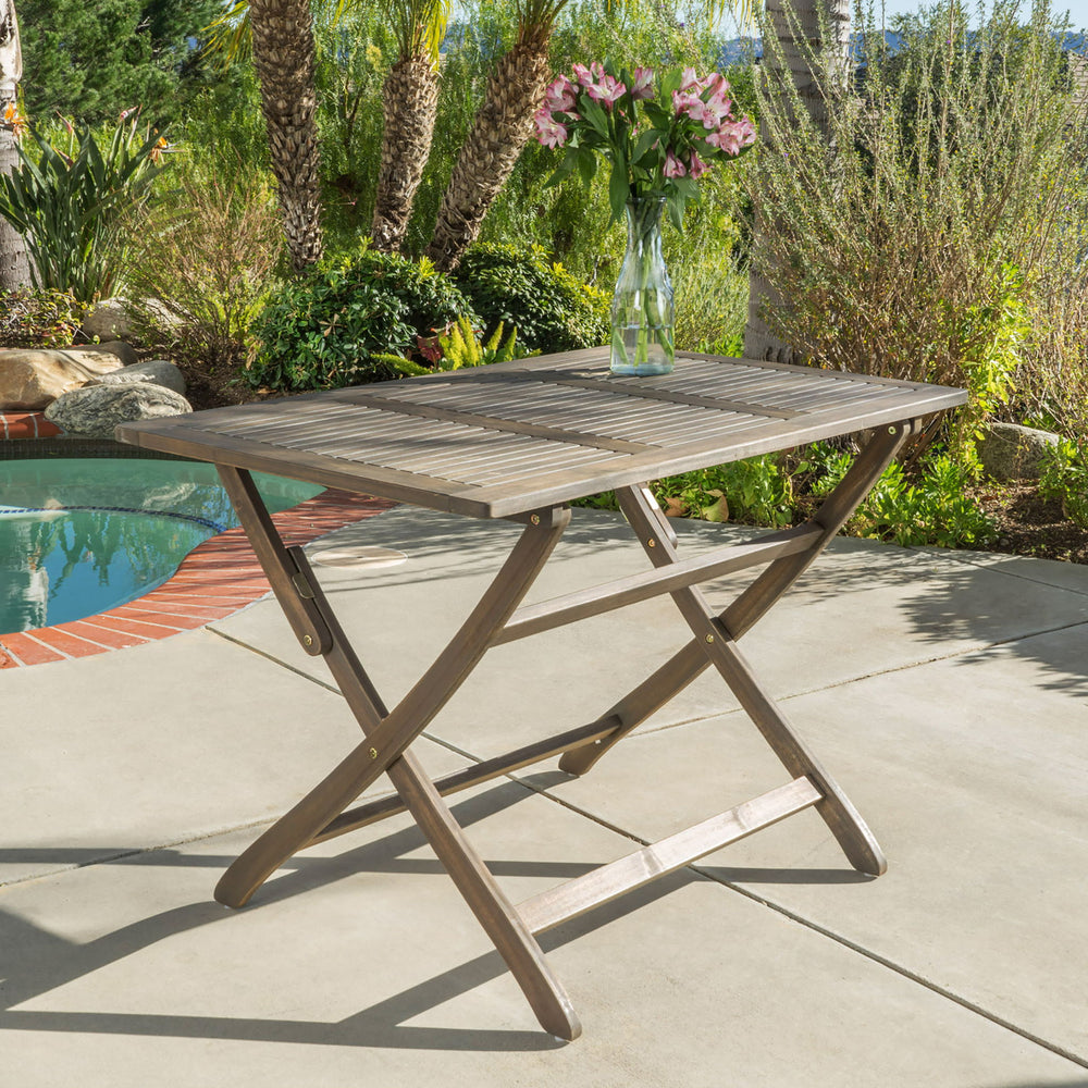 Blissique - Outdoor Foldable Wood Dining Table With Slat Design - Gray 43.5"W x 27.5"D x 29.75"H - 24.25 lb