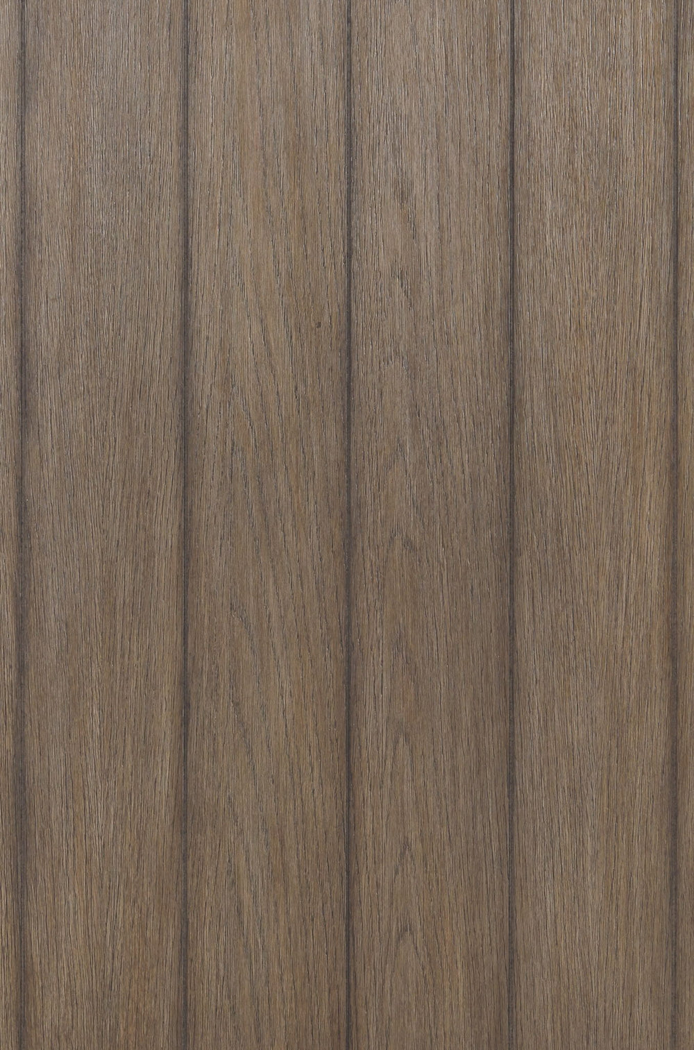 Two-tone finish in textured antique white on the legs and lower shelves and textural weathered oak color on table tops