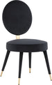 Give your dining area a chic touch with this Brandy velvet dining chair from Meridian Furniture. Featuring a rounded seat and rounded backrest, this chair brings an element of style to your dining table. Soft velvet upholstery makes this chair a luxury to sit on, providing softness and comfort while you eat breakfast, lunch, or dinner. Its brushed brass finish pops out from the the velvet upholstery, giving it a contemporary style that complements your home.