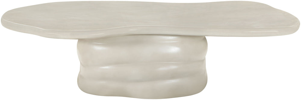 Organic curves meet modern strength in the Branna taupe fiber-reinforced concrete coffee table, a sculptural take on Art Deco design. Its smooth surface and fluid base create a bold focal point with natural elegance. Suitable for indoors or outdoors, it's built to endure while adding artistic presence to any setting.