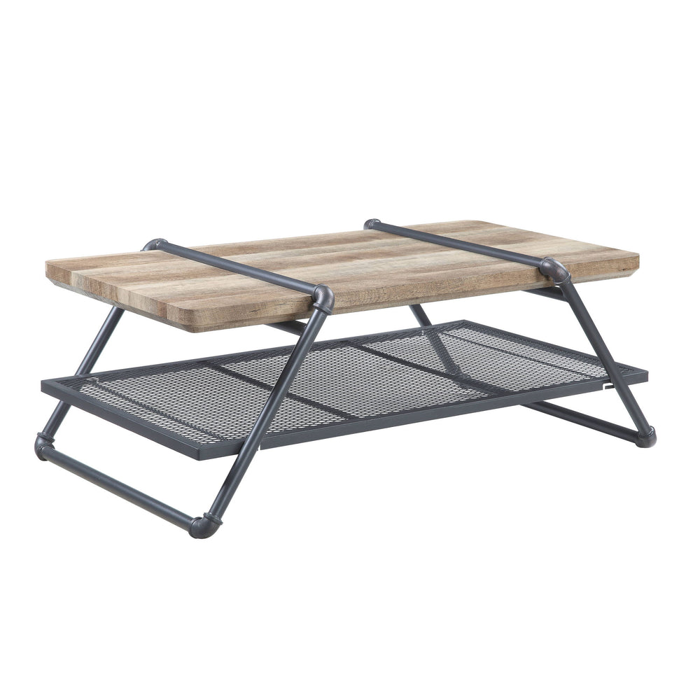 Stylish Design: This coffee table combines rustic charm and industrial flair with its Oak and Sandy Gray finish, making it a stylish centerpiece for any living room.