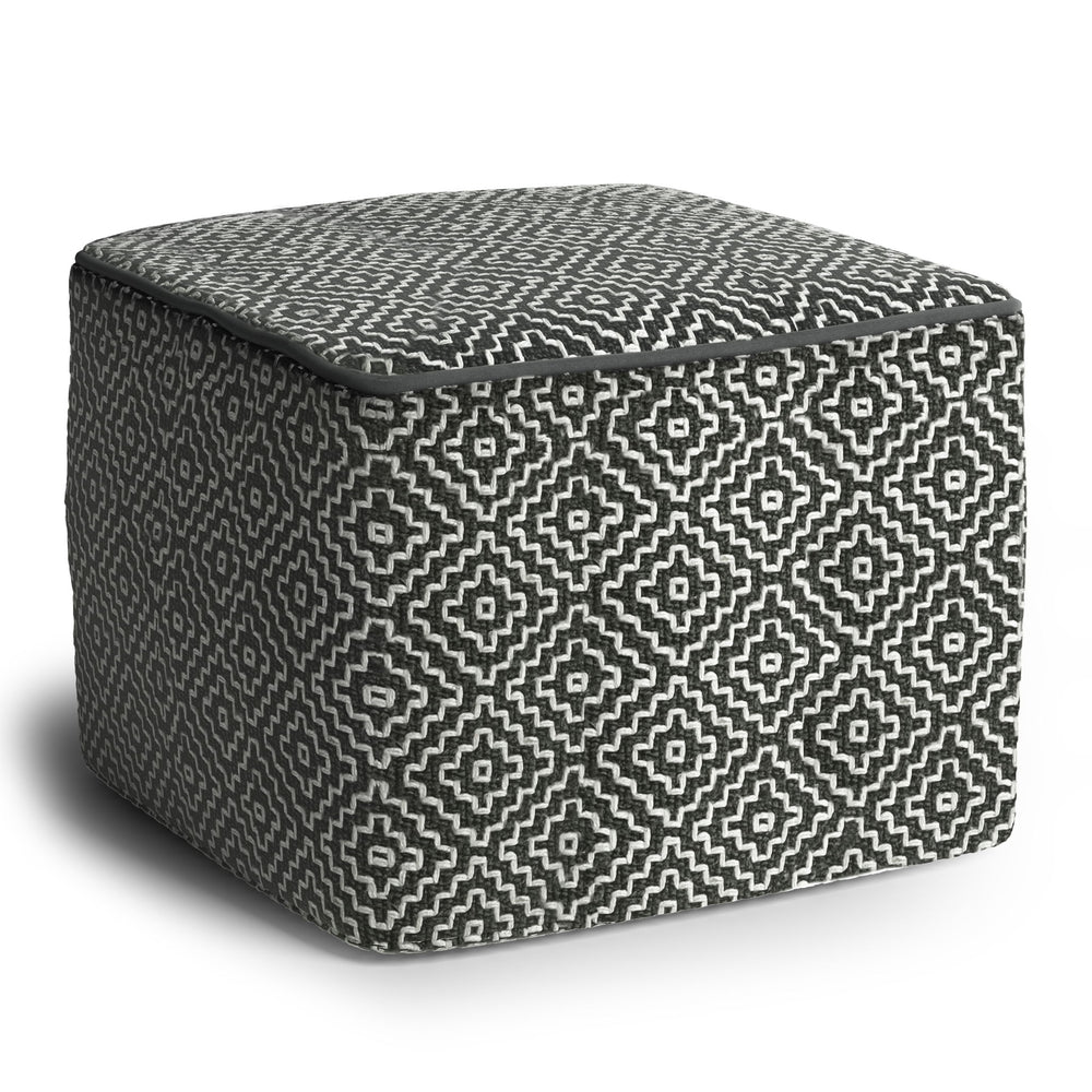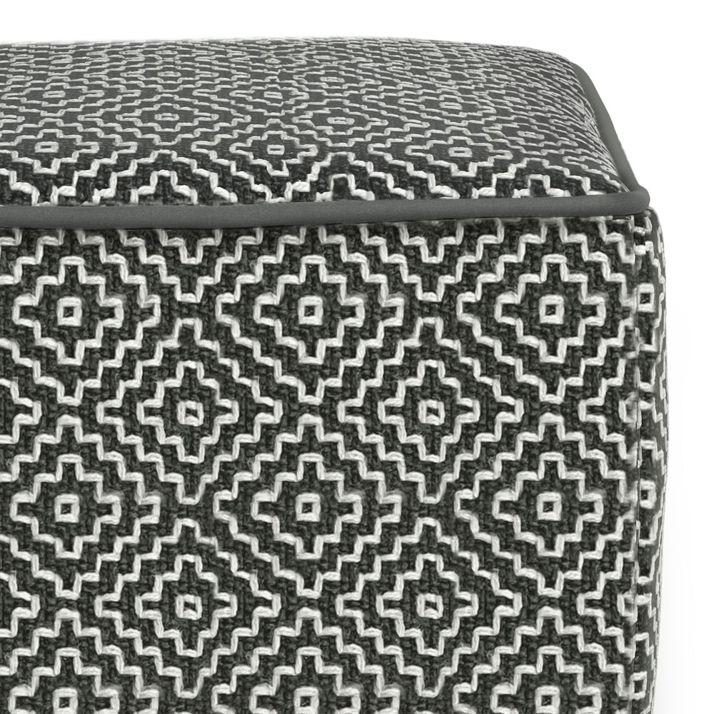 Briella - Square Woven Outdoor / Indoor Pouf - Gray / White 18.0"W x 18.0"D x 14.0"H - 4.9 lb