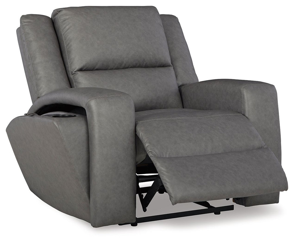 This recliner appeals to your love for feature-filled furniture, all while maintaining a clean-lined and contemporary design. Pop-out storage and cup holders keep essentials close when you need them and tuck away easily when you don’t. Time to recline? A subtly placed handle extends the footrest with a simple pull. The sleekest of seating options, this recliner expertly balances form and function.
