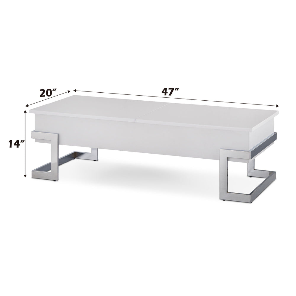 Calmam - High Gloss Coffee Table With Lift Top - White 20.0"W x 47.0"D x 14.0"H - 62.0 lb
