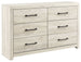 Cambeck - Six Drawer Dresser - Whitewash 58.7"W x 15.31"D x 36.46"H - 168.0 lb