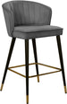 Give your kitchen counter or home bar a fresh new look with this Cassie Stool. The shell-shaped back and channel tufted design draw the eye, making this stool an attention-commanding addition to your space. The sleek metal legs flare slightly to create a modish silhouette.