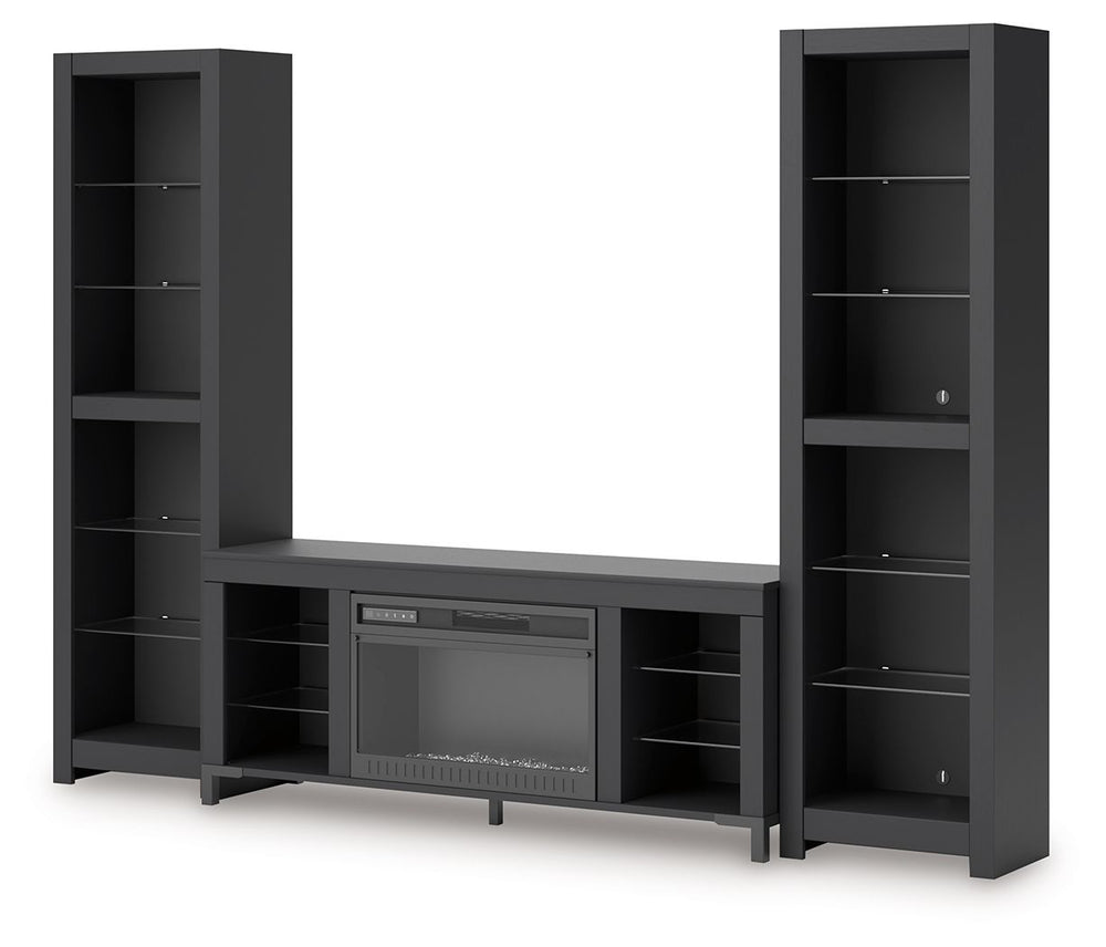 Level up your gaming experience and make movie nights to remember. This entertainment center with fireplace extends your entertainment beyond the screen. Its built-in fireplace brings the heat, synchronizing with LED backlighting on the assorted shelves. And you can customize the vibe with three trendy color options: blue, white and red. Modern function. Captivating, cool style. With this entertainment center, revamp your home’s recreational hub like never before.
