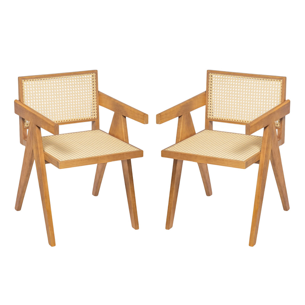 Chandigarh - Chic Arm Dining Chair Set (Set of 2) - Natural 20.25"W x 23.0"D x 30.25"H - 14.11 lb
