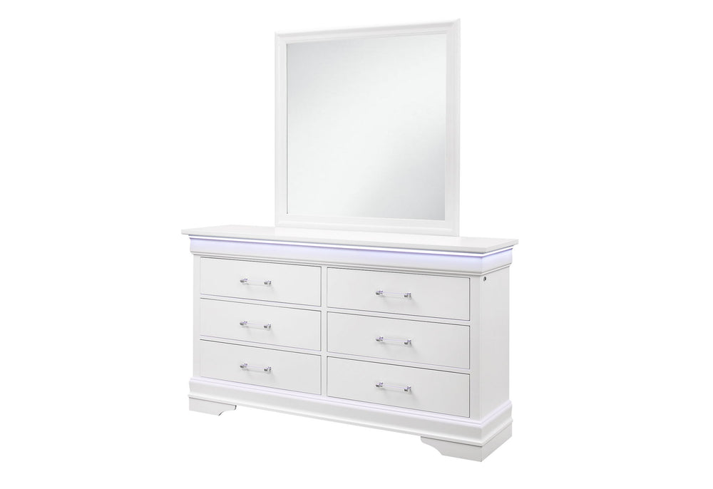 Charlie - Dresser With LED - White 59.29"W x 16.22"D x 33.58"H - 91.3 lb