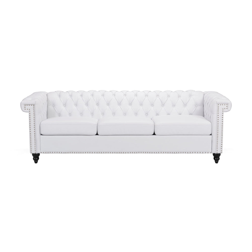 Chesterfield Style 3 Seater Sofa With Button Tufting And Nail Head Accents - White 83.0"W x 32.0"D x 27.75"H - 87.3 lb