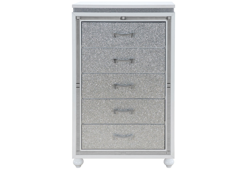 Introducing the Collete Collection by Global Furniture USA, a luxurious bedroom set that exudes modern glamour. Featuring crushed crystal drawer fronts and mirrored accents, this collection creates a dazzling atmosphere. The sleek hardware complements the design, while the LED-lit bed adds a contemporary touch. Elevate your bedroom with the Collete Collection, where style and sophistication meet to form a stunning sanctuary for rest and relaxation.