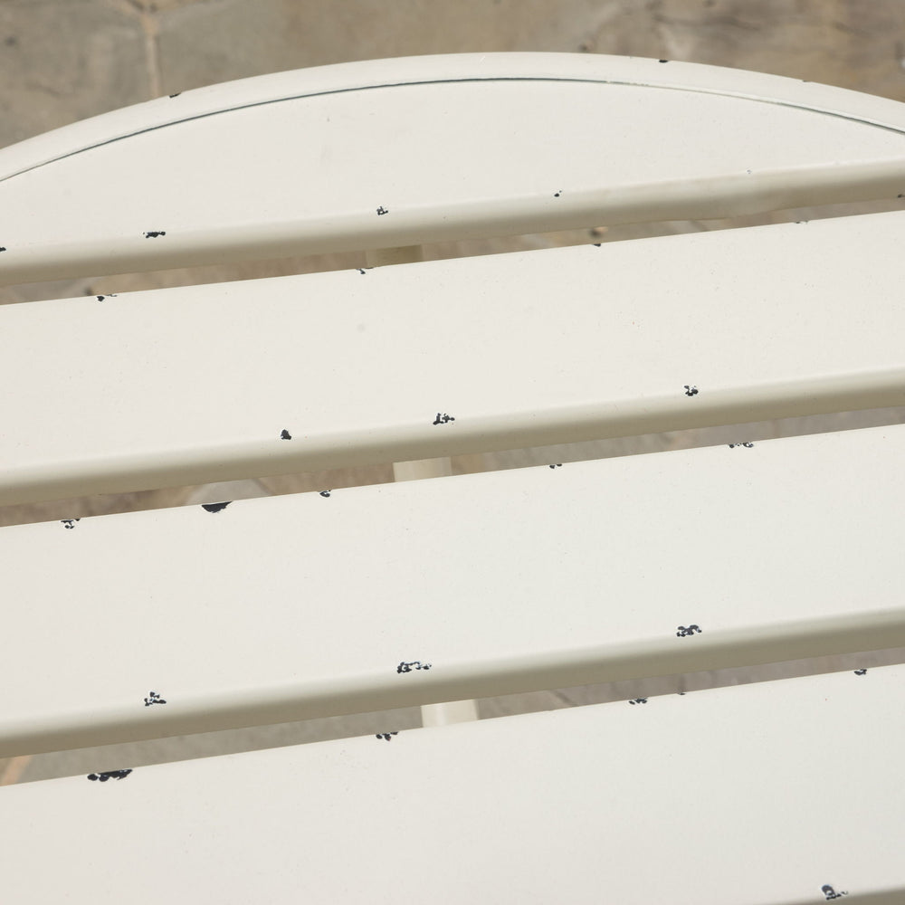 Durable Construction: Crafted from weather and water-resistant iron, the set includes a round table and two armchairs with splat backs. The slatted details ensure water doesn't pool, ma it ideal for outdoor use.
