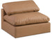 Give your space a whole new look with this Comfy vegan leather armless chair. This handsome chair fits nicely with other items in the Comfy collection and is a versatile seating option designed for adaptability, comfort and style. Wrapped in rich durable vegan leathered upholstery, this chair offers a plush embrace of overstuffed down feather cushions, carefully crafted to deliver the highest level of comfort. The perfect seat for creating an oasis for relaxation, this chair has thick foam surrounding its frame for added support and coziness.
