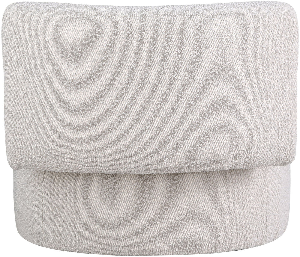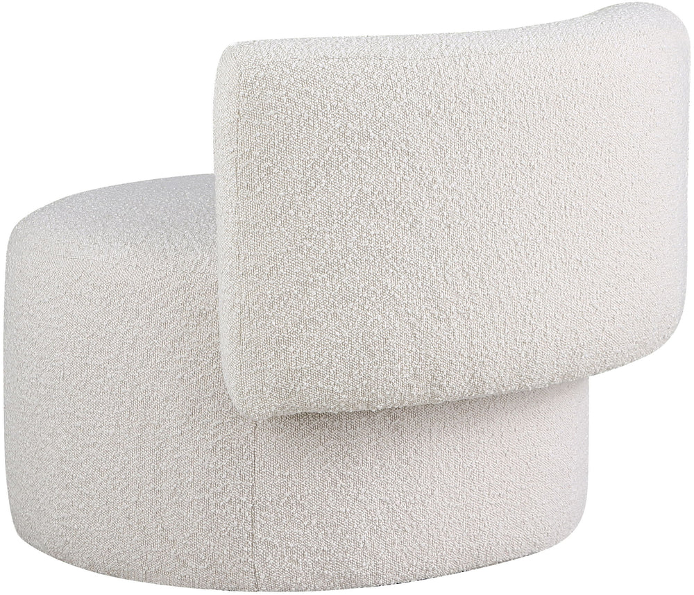 Give your home a new conversation piece with this Como cream boucle fabric accent chair. Its contemporary design is sure to catch eyes whenever you have visitors. Its round seat provides a comfortable place to sit, and a curved back allows you to settle back and relax. Its rich cream boucle fabric upholstery paired with a foam cushion makes this accent chair soft, and its wooden frame ensures that this chair will last for years to come.