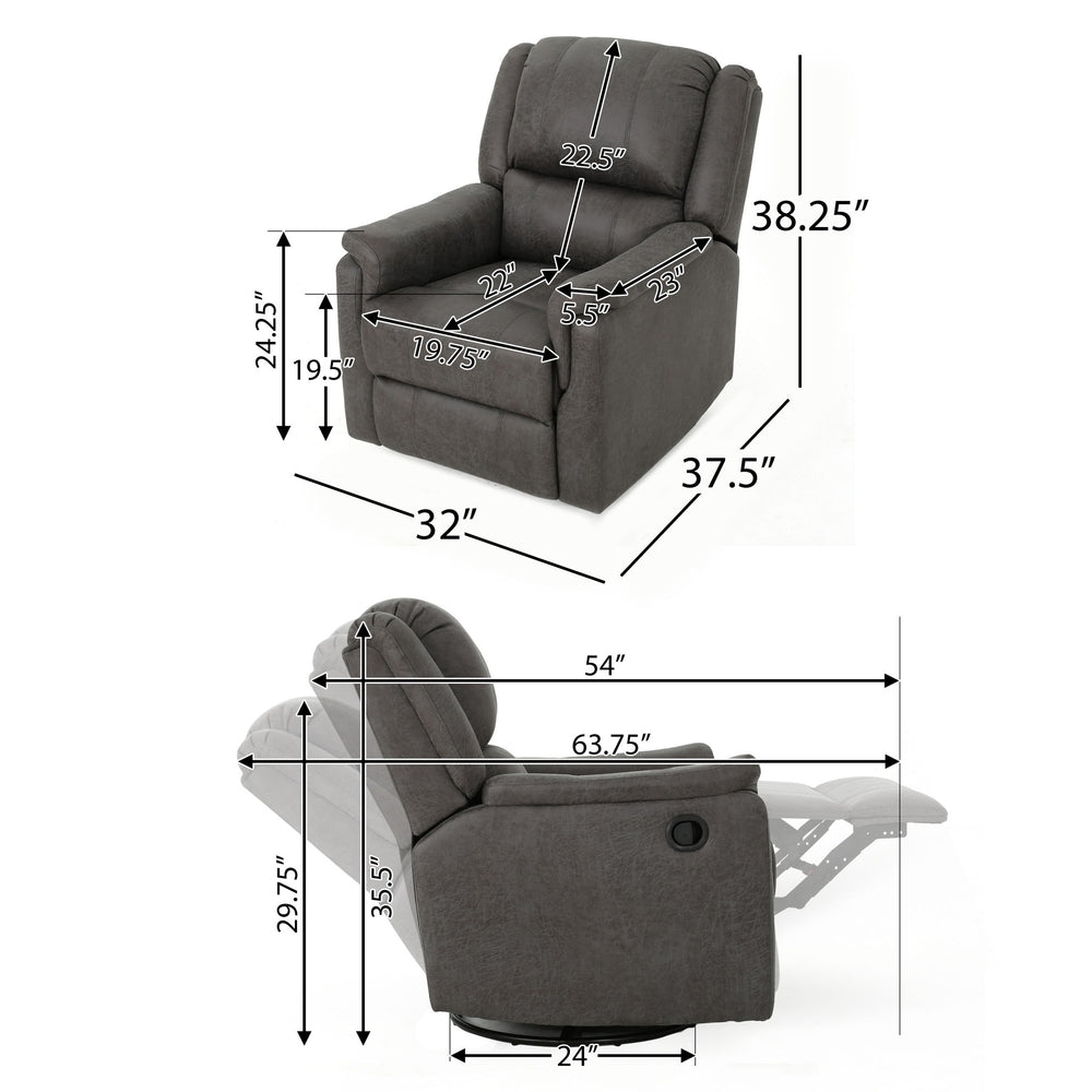 Contemporary Glider Recliner Chair With Swivel Function - Slate 32.0"W x 37.5"D x 38.25"H - 75.62 lb