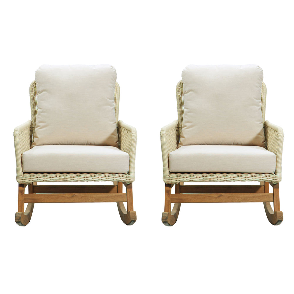 Contemporary Minimalist Wicker Rocking Chair Set With Soft Polyester Cushions And Durable Wooden Frame For Indoor And Outdoor Spaces - Ivory 24.8"W x 42.52"D x 31.5"H - 29.76 lb