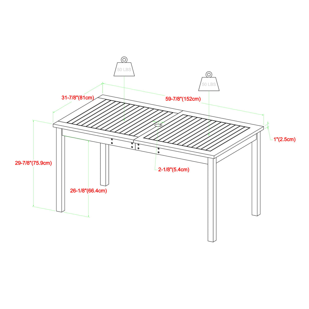 Contemporary Slat Top Acacia Wood Outdoor Dining Table - Dark Brown 60.0"W x 32.0"D x 30.0"H - 48.0 lb