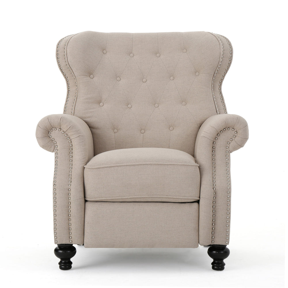 Contemporary Push Back Recliner With Button Tufting And Nailhead Trim - Orange 36.0"W x 35.5"D x 42.0"H - 68.12 lb