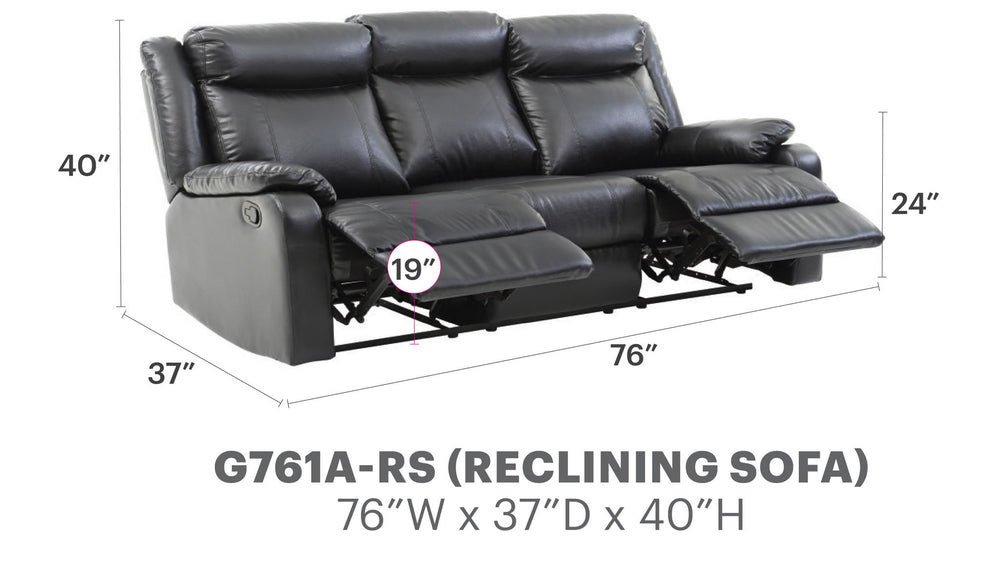 Double Reclining Sofa - Black 76.0"W x 37.0"D x 40.0"H - 177.0 lb