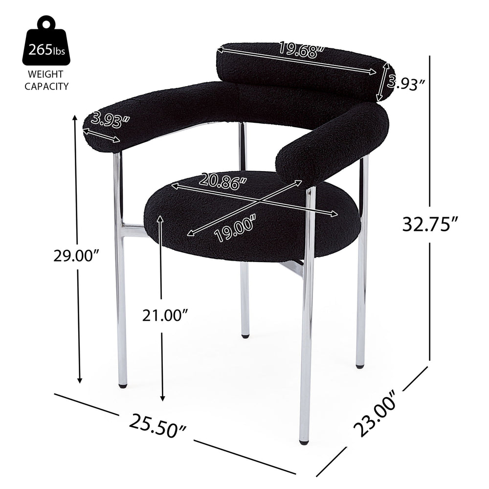 Contemporary Upholstered Armchair Dining Chairs With Metal Legs (Set of 2) - Black 25.5"W x 23.0"D x 32.75"H - 17.2 lb