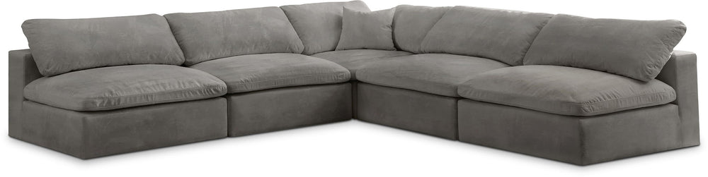 Bring home this Cozy 5-piece sectional for a fresh new look. Embrace casual elegance with this Cozy velvet cloud-like comfort modular fiber-filled seating option. Handsome from all angles, this piece features soft velvet upholstery to make it an easy fit in any room. This modular piece can be combined with other items in the Cozy collection to create a seating group of your dreams. The cushions on this piece are exceptionally comfortableand filled with fiber for luxury that you deserve as you rest and relax.