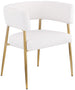 Enliven your dining area with the Creston linen textured fabric dining chair. Upholstered in rich durable linen textured fabric, this dining chair is not only stylish but also built to last. The brushed gold metal frame adds a touch of luxury, perfectly complementing its contemporary design. The curved back and plush cushioned seat ensure an inviting and comfortable dining experience. Whether it's for daily meals or special occasions, the Creston dining chair combines modern aesthetics with comfort.