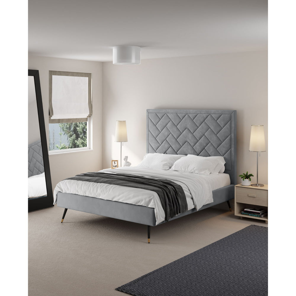 Mid-Century Modern Design: Clean lines and a stylish chevron headboard create a timeless aesthetic for any bedroom.