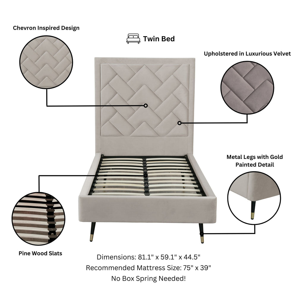 Crosby Twin Bed - Greige 81.1"W x 44.5"D x 59.1"H - 93.93 lb