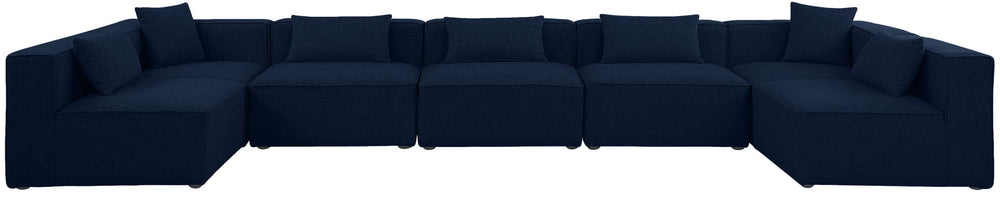 Cube - Linen 7 Piece Modular U-Shaped Sectional - Navy 180.0"W x 72.0"D x 26.0"H - 345.4 lb