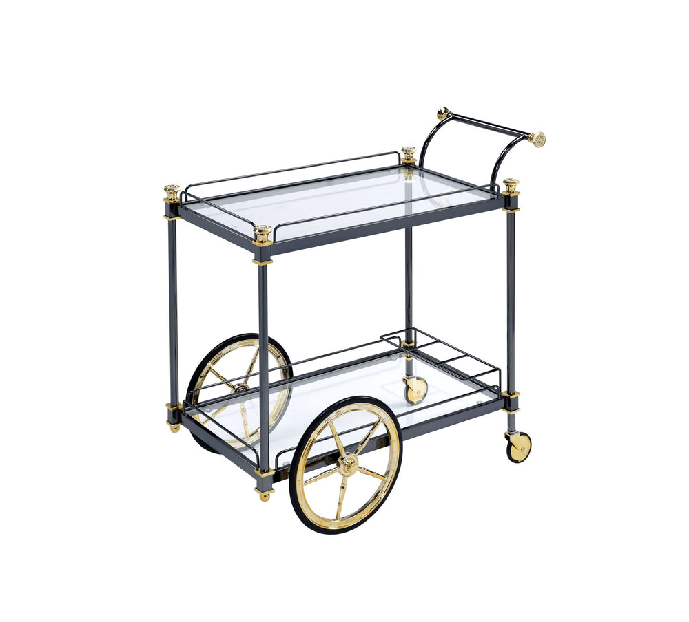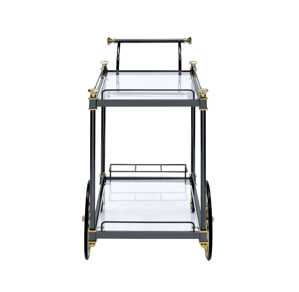 Cyrus - Clear Glass Serving Cart - Black / Gold 20.0"W x 31.0"D x 31.0"H - 28.0 lb