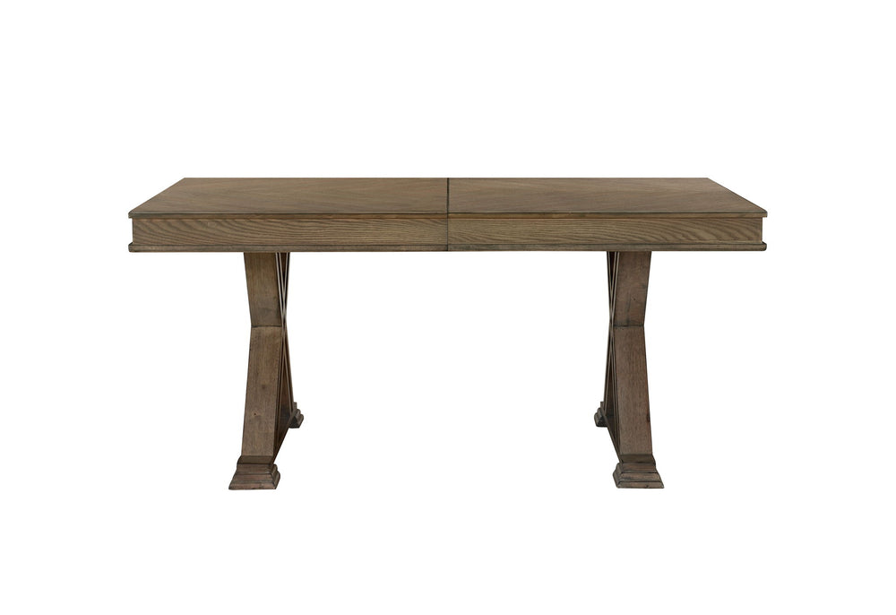 The D2974 Dining Collection by Global Furniture blends timeless craftsmanship with contemporary flair. The centerpiece is a stunning dining table featuring an 18" butterfly leaf extension and a rich US White Ash veneer tabletop arranged in an eye-catching brown chevron pattern, adding texture and visual interest to your dining space. Accompanying the table are matching dining chairs and a bench upholstered in soft grey fabric, providing comfortable seating with a modern, understated look. The harmonious combination of warm brown tones and cool grey upholstery creates a balanced and inviting atmosphere, perfect for everyday meals or special occasions. The D2974 Collection offers versatile style, functional design, and quality materials for a sophisticated dining experience.