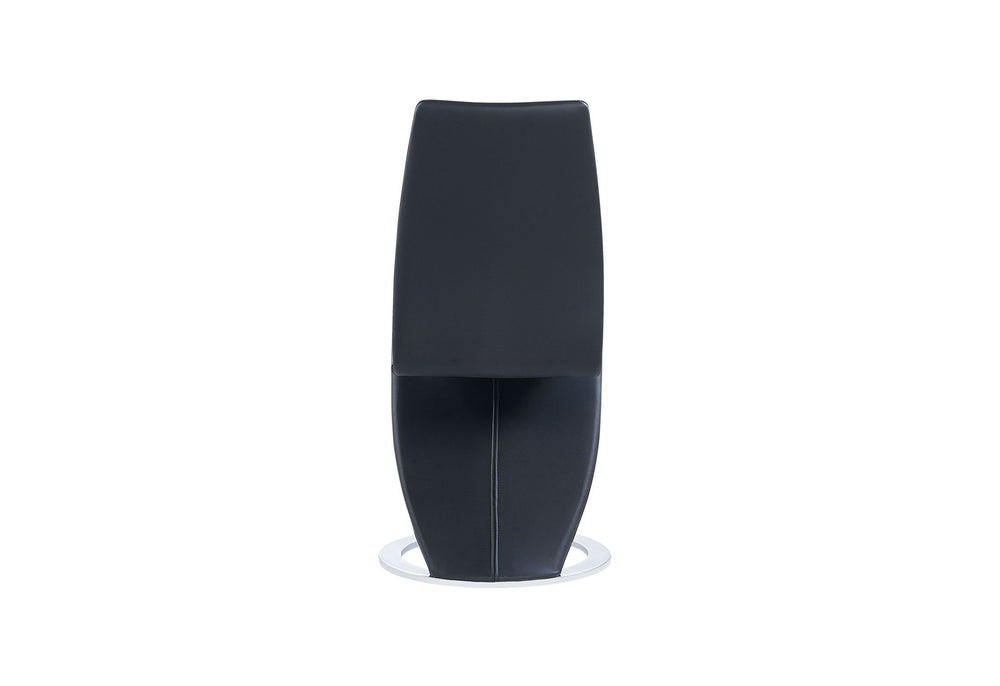 With a Z-Shape design and horse shoe shaped base this dining chair will liven up your contemporary home. This sturdy chair is finished in a black PU material over foam fill for a comfortable and relaxing seating experience. Adding this chair to your dining area will most certainly spruce up your decor.