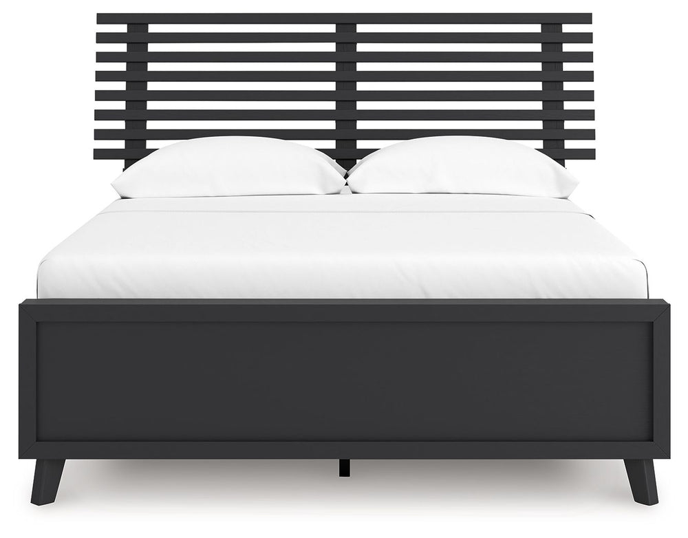 Sophisticated style for the savvy shopper. This panel bed prioritizes affordable, on-trend design. Its subtle replicated texture recalls the natural beauty of wood, highlighting the slatted styling. And a matte black finish savvily suits different approaches to modern aesthetics. Mix and match with light and bright hues, or pair with other dark tones for a moody look.