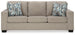 You’re in for a neat treat with this sofa. Its comfy seats are covered in soft, textural upholstery, and the wide track arms are eager to support your quest for total relaxation. Distressed abstract toss pillows bring a fresh breath of contemporary style while accentuating the sofa's color.