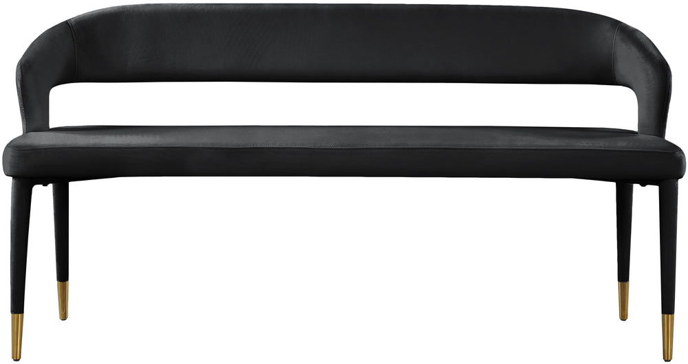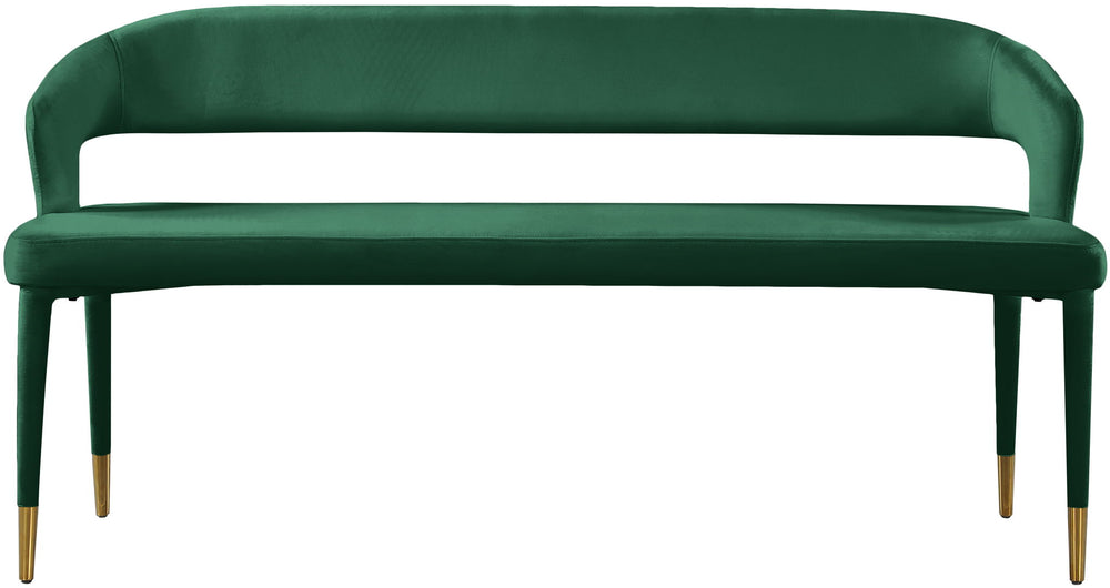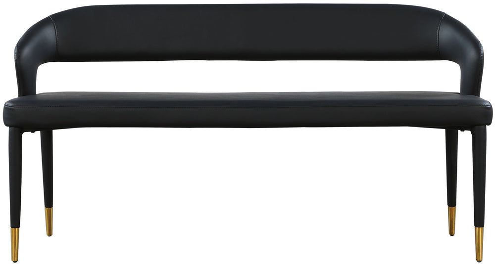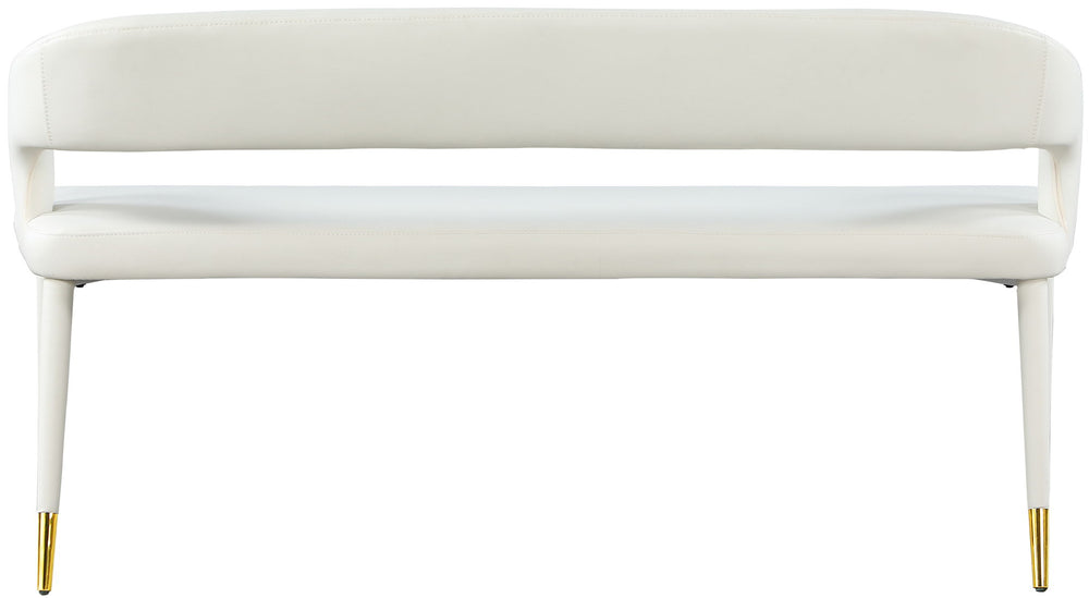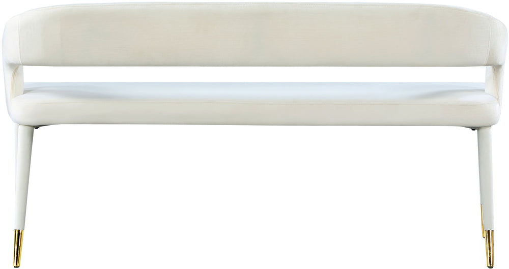 Enjoy extra seating space in your home with this Destiny bench. Its soft upholstery offers coziness while sitting, ensuring you and your guests are always comfortable. A rounded, open back provides additional comfort as well as style. Gold tipped upholstered legs give this bench an extra touch of style that complements any contemporary living space. Its long length guarantees that you ll always have extra space to seat family and friends who visit.