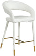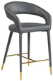Settle in for a meal with friends seated in this Destiny stool. Soft upholstery makes this stool a sleek and inviting option for pairing with your favorite counter table. The rounded back adds comfort to mealtime and lends the stool a chic, eye-grabbing touch, while tapered legs topped with gold tips give the stool an elegant finish.