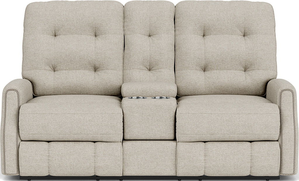 Devon - Transitional Fabric Power Reclining Loveseat With Console, Power Headrests & Nailhead Trim 72.0"W x 41.0"D x 42.0"H - 290.0 lb