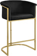 Complement your contemporary home furnishing with this Donatella Stool from Meridian Furniture. Its curved design and rich velvet upholstery provides a comfortable, soft, luxurious seat for you to relax in, while also adding a touch of elegance to your living space. Its steel base adds the perfect balance to the stool's soft color, in addition to holding the stool up to counter height and providing durable support for years to come.