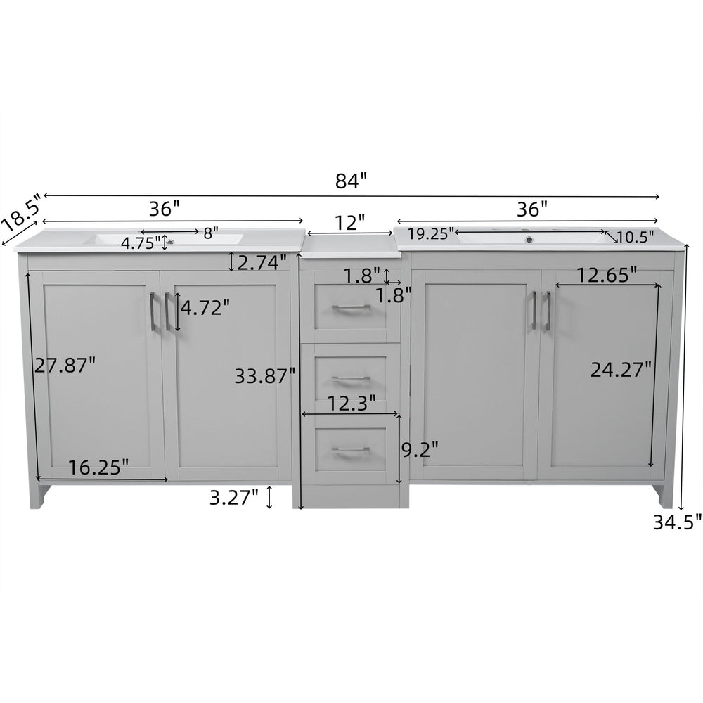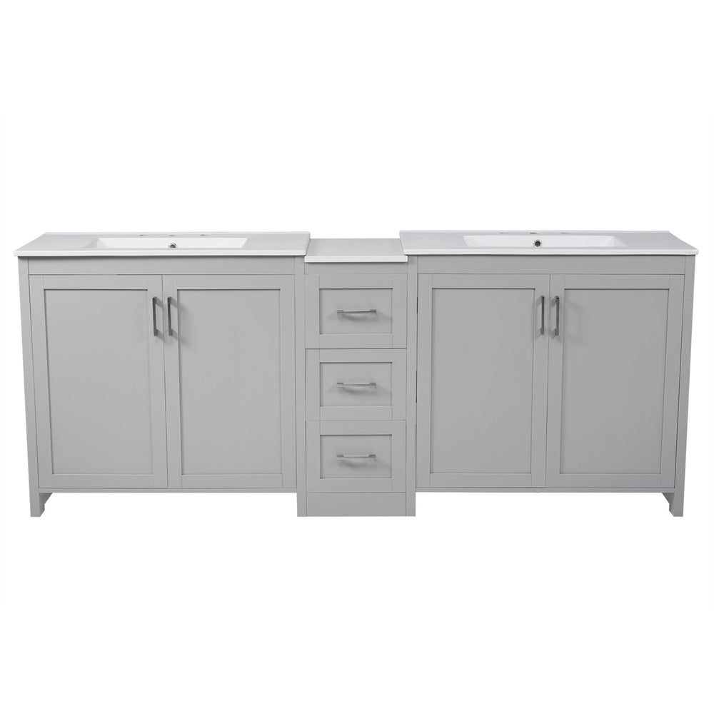 Dual Ceramic Sinks: Two separate 36-inch sinks allow efficient, simultaneous use for multiple users. Quartz Countertop: Durable,...