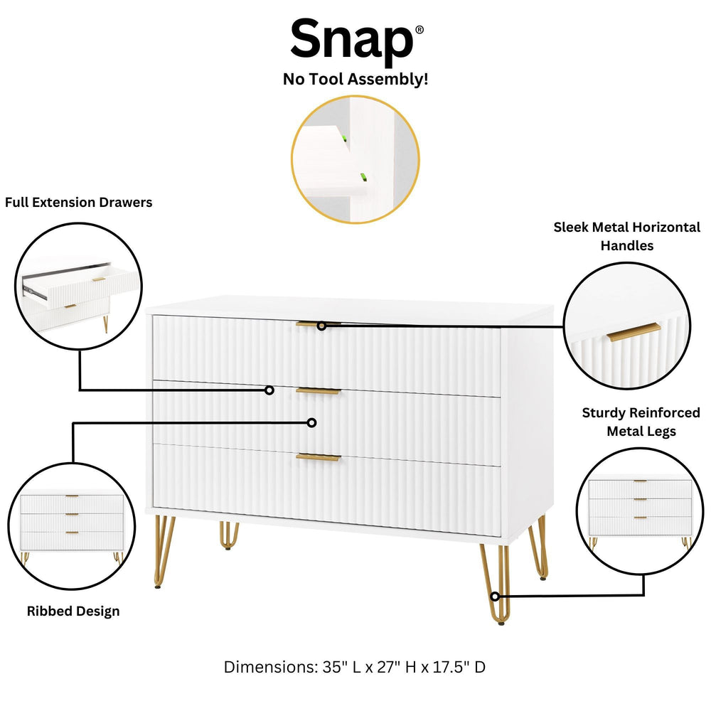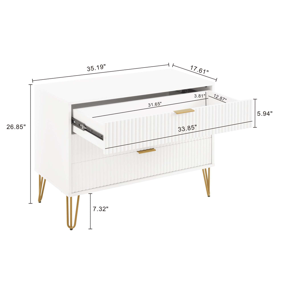 Dumbo - Fluted Dresser - White 35.19"W x 17.61"D x 26.85"H - 70.0 lb