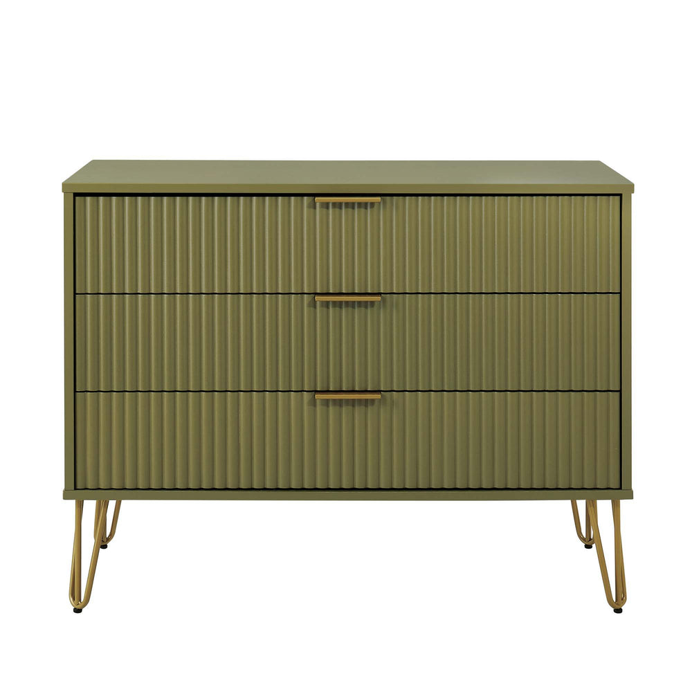 Dumbo - Fluted Dresser - Olive Green 35.19"W x 17.61"D x 26.85"H - 70.0 lb