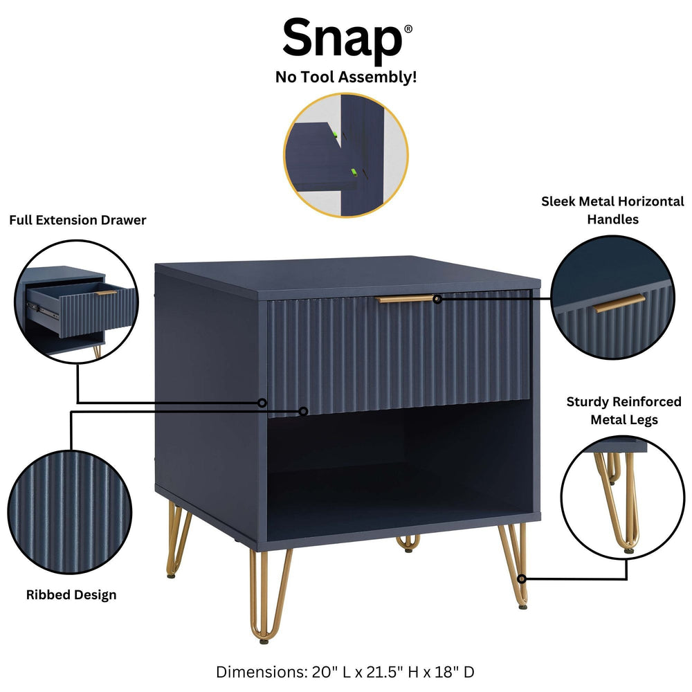 Dumbo - Fluted Nightstand With 1 Drawer - Dark Blue 20.07"W x 17.73"D x 21.65"H - 30.8 lb