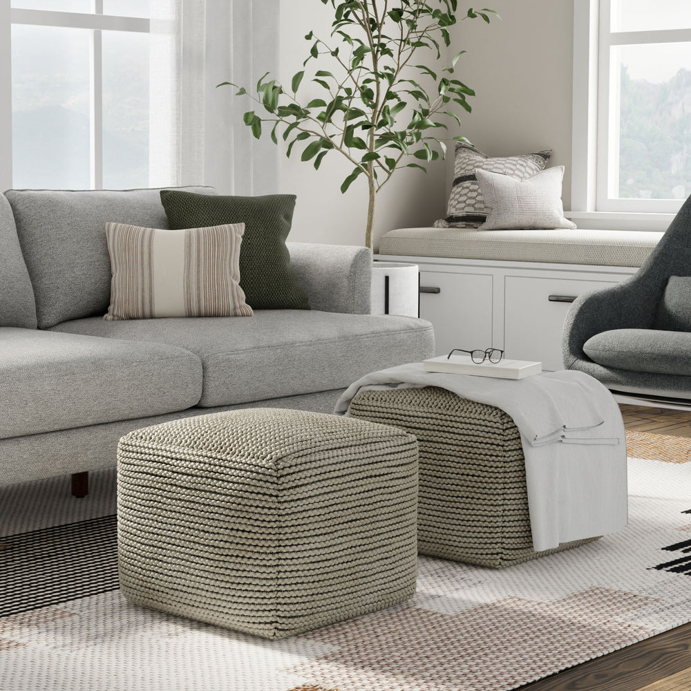 Eastmont - Outdoor / Indoor Pouf - Cream 18.0"W x 18.0"D x 14.0"H - 5.5 lb