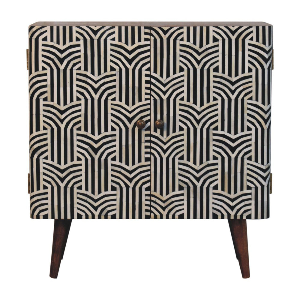 Artisan Furniture Solid Wood Edessa Bone Inlay Cabinet - This beautiful boho inspired cabinet has been constructed from 100% solid mango wood and has a finish. Other features include bone inlay front doors, and Nordic style legs. The bone inlay is sourced responsibly from deceased animals such as camels, goats, and buffaloes.