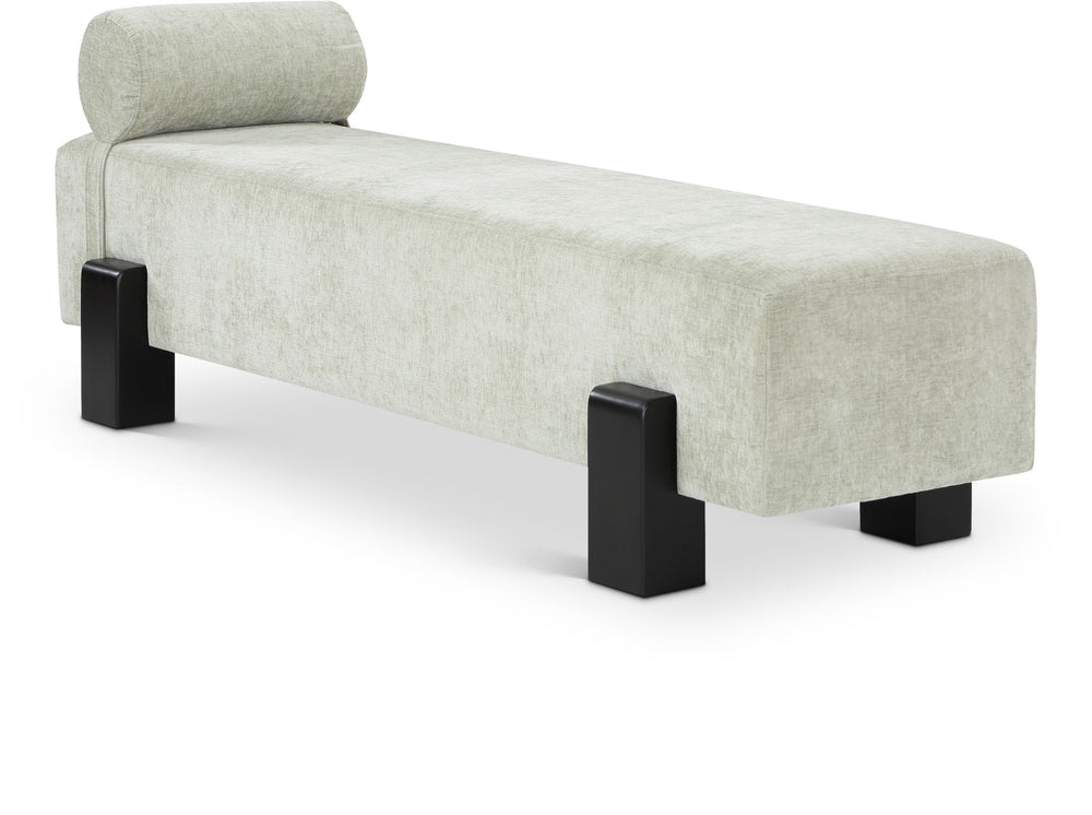Go for a cozy, chic vibe with this Edison chenille fabric bench, a versatile and stylish addition to your home. Upholstered in soft chenille fabric, it epitomizes comfort and sophistication. The rich black finish of the solid wood base adds warmth and durability, ensuring this bench is both functional and timeless. A bolster pillow is included for added comfort and a touch of elegance. The bench's modern mid-century design seamlessly complements a range of decor styles in the entryway, bedroom, or living room.