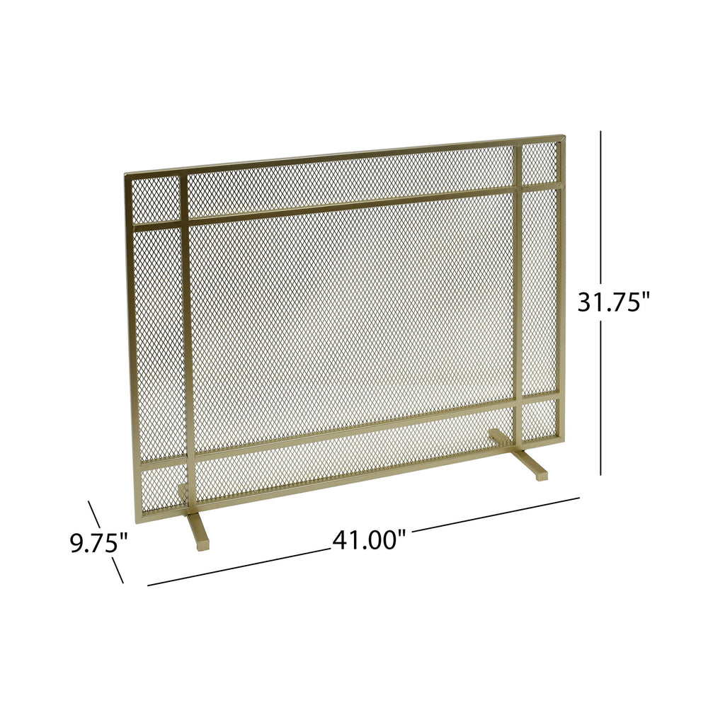 Modern Single Panel Iron Fireplace Screen Handcrafted Minimalistic Design - Gold 41.0"W x 8.0"D x 31.75"H - 8.82 lb