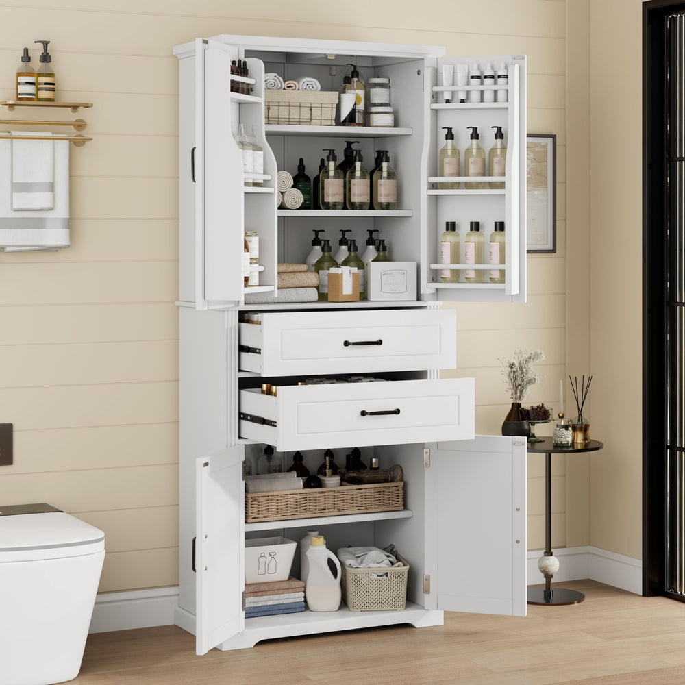 Elegant Multi Functional Storage Cabinet With Slide Rail Drawers, Adjustable Shelves - White 30.0"W x 15.75"D x 72.5"H - 111.33 lb