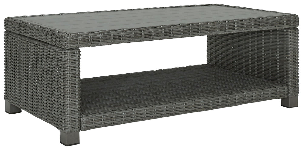 Add a distinguished touch of gray to your outdoor living space with this coffee table. This head-turning table is made with resin wicker over an aluminum frame for a relaxed look that provides seasons of enjoyment. Its aluminum top combines the exceptional durability and weather resistance you need with the "wood look" finish you love.