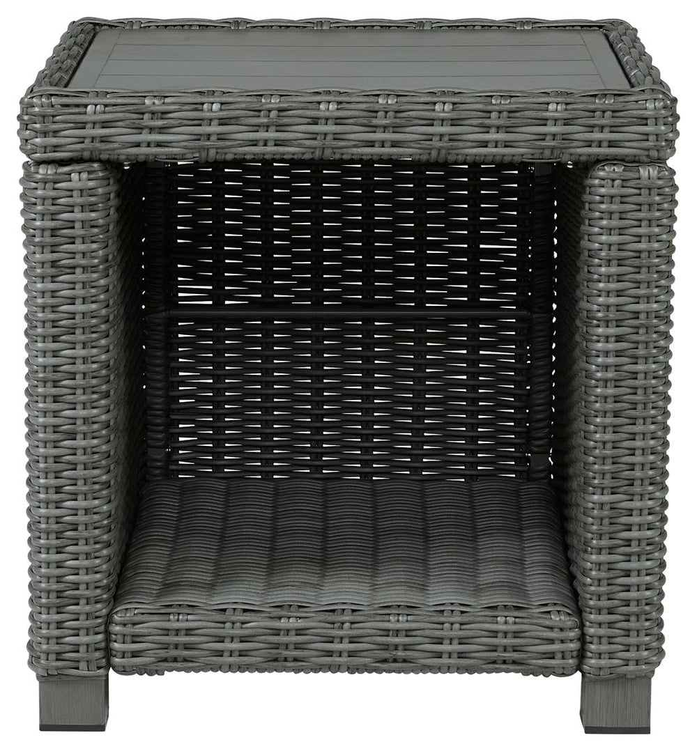 Add a distinguished touch of gray to your outdoor living space with this end table. This head-turning table is made with resin wicker over an aluminum frame for a relaxed look that provides seasons of enjoyment. Its aluminum top combines the exceptional durability and weather resistance you need with the "wood look" finish you love.